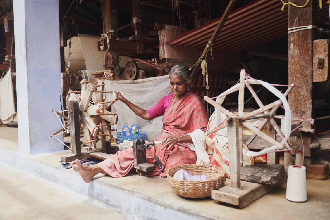 TB: Nishanth, you’re running a business alongside a more NGO-style farm system which benefits both the people and the health of the soil. And I’m really interested in how you balance these two sides of the collective to meet the human needs of the farmers and employees as well as running a fashion business without this trajectory of perpetual growth.