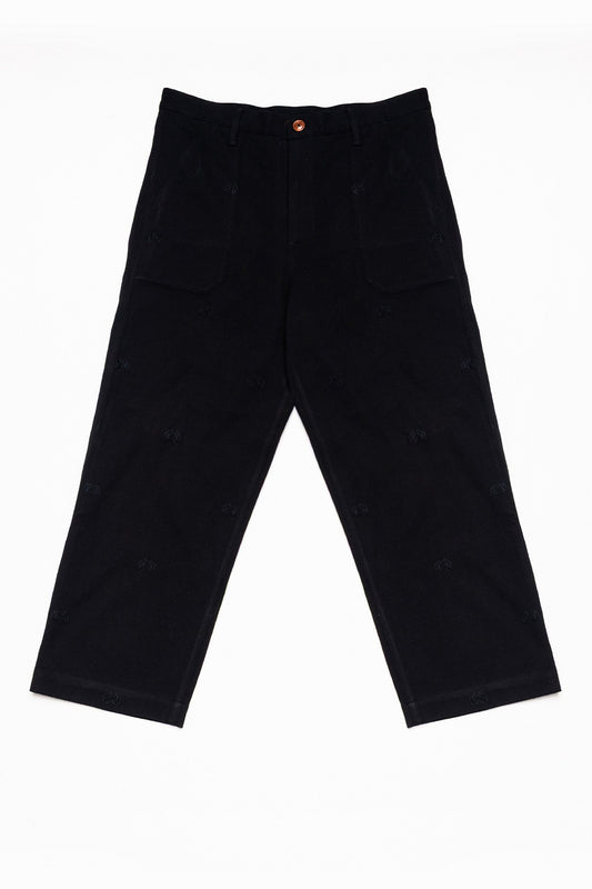 Hand-Embroidered Carpenter Pant, in Black